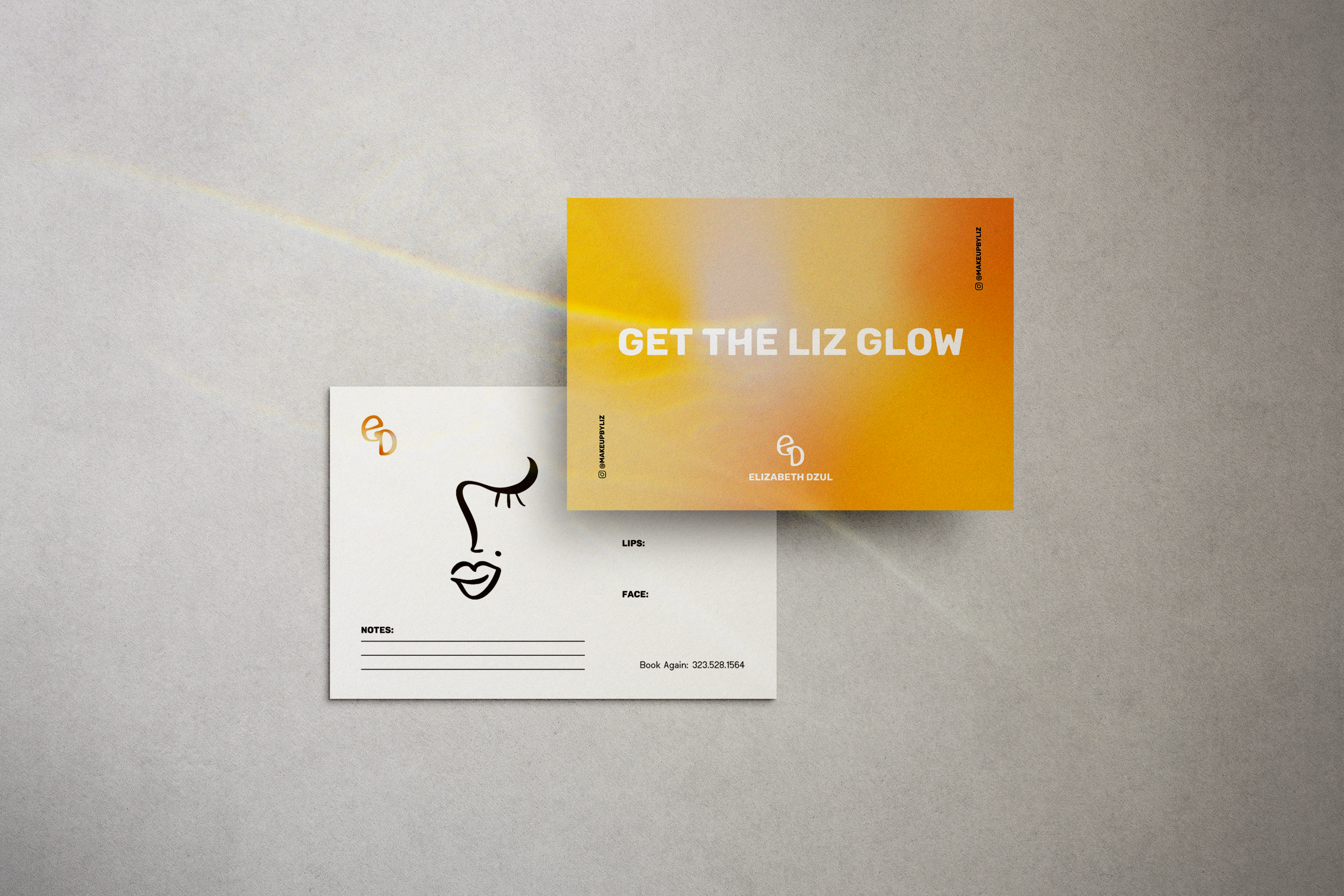 Our aim was to develop a cheerful, inviting, and uplifting identity. Elizabeth is a prideful “Angelino,” so we felt it was important to incorporate a “California cool” aesthetic. We achieved this by implementing a vibrant and joyful color palette. The gradient evokes a calming and positive aura and is an ode to the blending of pigments. We hand-lettered the monogram to create a unique logo mark.